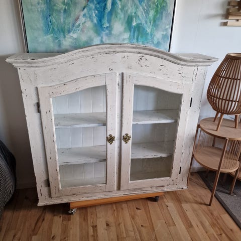 Enkelt glasplade mangler, kan købes hos en glarmester til 150-200,- Glasplade er lige til at montere.