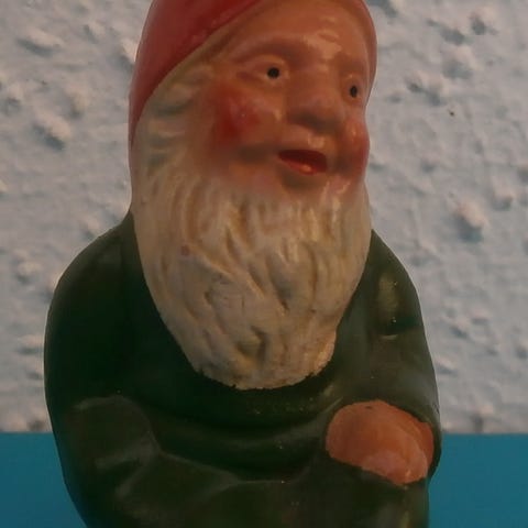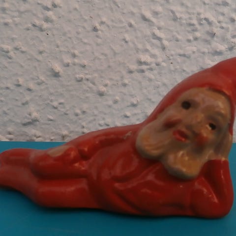 Gamle ler liggende nisse i brun og rød farve