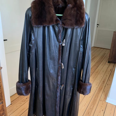 Sort læder og mink jakke sælges