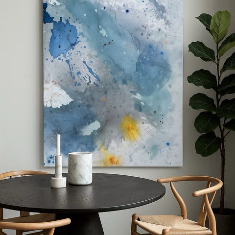 Bemærk at billede nummer 1 og 2, er udarbejdet vha chatGPT, dvs at maleriet er sat ind i “kunstige” omgivelser, for at kunne fremvise og visualisere det i flere forskellige settings og miljøer.
