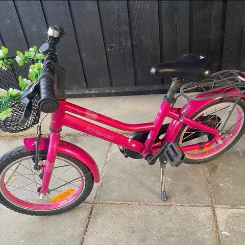 Den har stået uden for så har lidt rust på men det kan fjernes og så sidder der tape på den der beskytter nede ved kæden og kun fordi vi aldrig fik købt nogle skruer til at sætte den fast 😅
