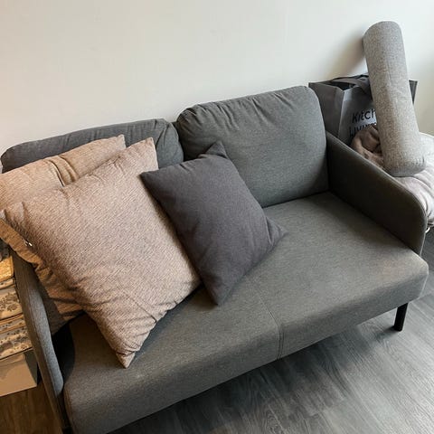 God, brugt sofa til gratis afhentning fra hjem med hund og børn (hunden har ikke ligget i sofaen, men hår enkelte steder kan ikke undgåes). Betrækket kan tages af og vaskes.