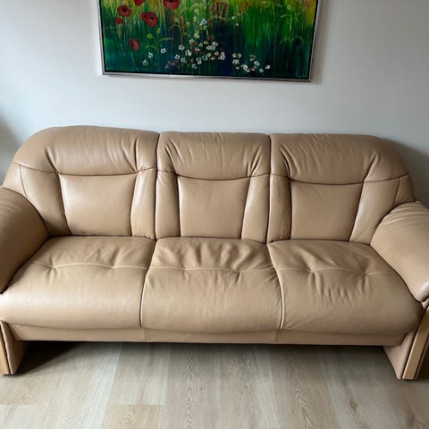 To-personers lædersofa i rød farve 157cm. Med chaiselong 227cm.