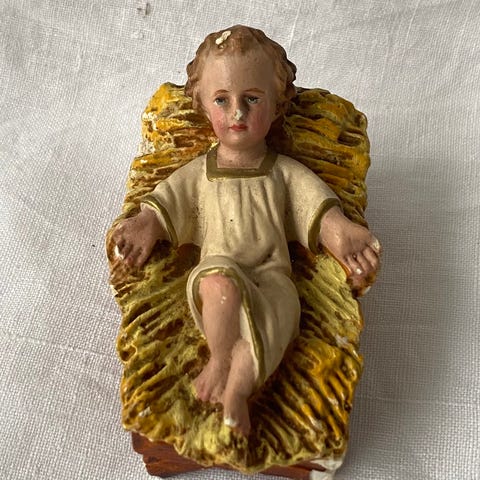 Franske santons – vintage stående får / lam (krybbefigurer)