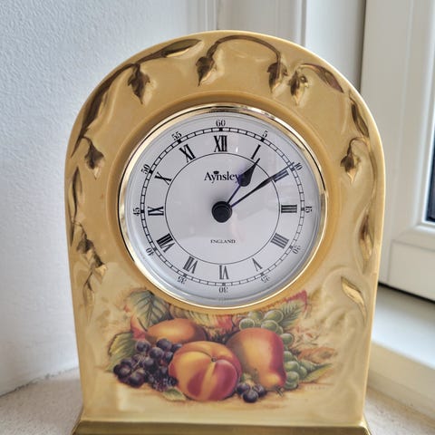 Tempus Fugit bordur med mekanisk urværk. Uret har en træramme med dekorative detaljer og romertal på urskiven. Uret er udstyret med pendul og mekanisk bevægelse. Medfølger instruktionsmanual til opsætning og vedligeholdelse.