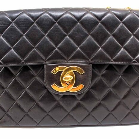 Chanel klassisk jumbo / large taske i caviar kalveskind / læder med quiltet mønster og kæderem med flettet læder.