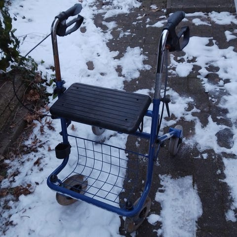 Rollator med sæde og håndbremser blå og sort