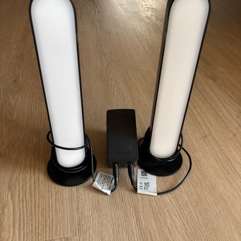 Philips Hue Play bar (hvid). Den er brugt en gang, så den fremstår som ny, bortset fra den har fået et meget lille hak i den ene ende, da den lå i en flyttekasse. Se foto.