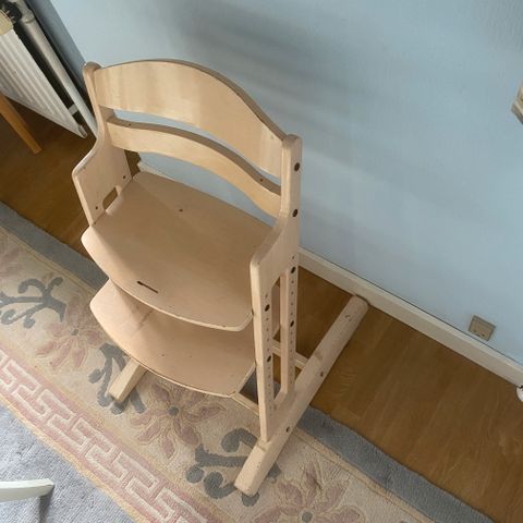 Baby højestole højde 80 cm x bredde 30 cm x dybde 35 cm. Vi har 2 stk. Pe. stk. 350kr. Nu kun en stk. tilbage.
