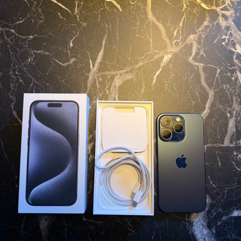 iPhone 15 Pro i blå titanium sælges. Den har altid været i cover og dermed i rigtig god stand. Har kun én lille overfladeridse i kanten (se sidste billede). Alt virker som det skal. Sælges udelukkende fordi jeg har fået ny telefon i julegave