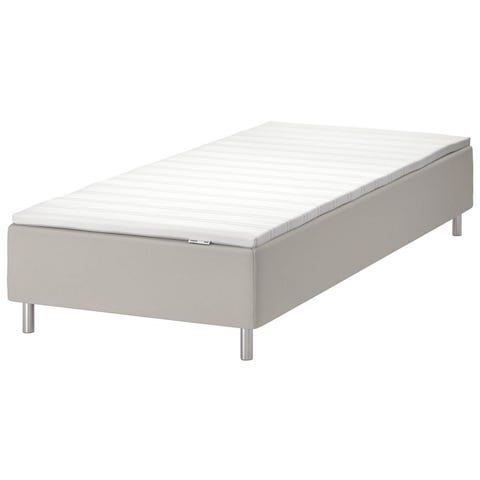 Halvandenmandsseng med boxmadras i superfin stand. Sengen er købt i 2019 og har kun været brugt periodevist, og fremstår derfor ikke slidt. Madrassen er fast.