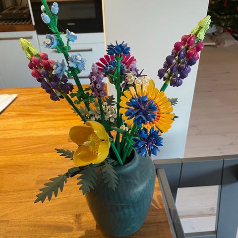 LEGO Icons 10315 Blomster Buket byggesæt med 939 dele. Sættet indeholder forskellige farverige blomster, designet til at skabe en detaljeret og dekorativ buket. Velegnet til voksne og samlere.