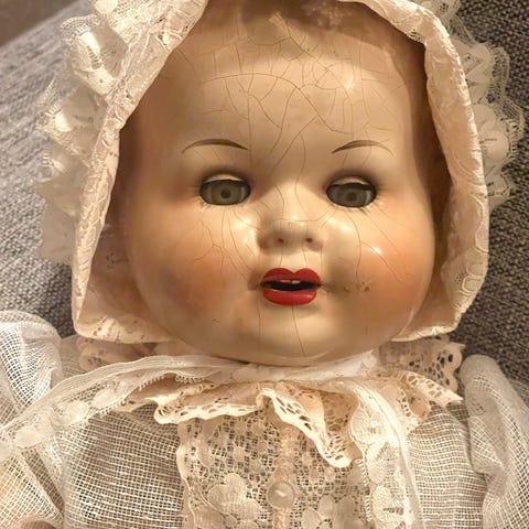 Så fin en dukkevugge i god stand. Den vugger perfekt og er dele er originale.