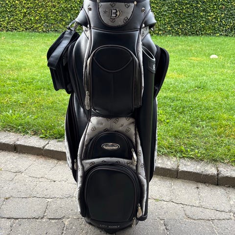 Bennington Golfbag i sort/sølv farve med flere lommer til opbevaring. Golfbaggen har en top med 14 rum til organisering af golfkøller. Materialet er holdbart og velegnet til transport på golfbanen.