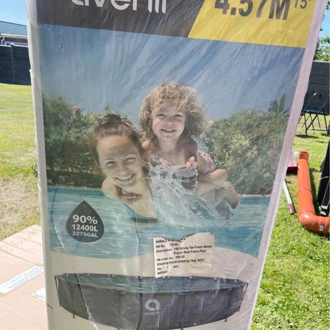 SunClub rektangulært oppblåsbart basseng med dimensjoner 225x150x43 cm i blå farve. Passer for familier og udendørs brug. Cover medfølger.