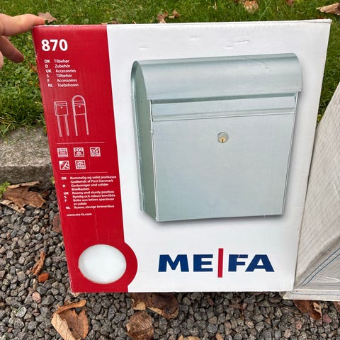 Fin ældre postkasse, kun med en smule overfladisk rust. Der er mange gode år tilbage i den.