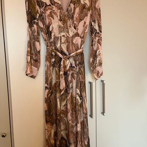Mos Mosh Hverdagskjole i størrelse M. Kjolen er sort og lavet af polyester. Den har lange ærmer med elastik ved håndleddene. Fin lille knap i halsen. Godt køb. Pris inkl porto
