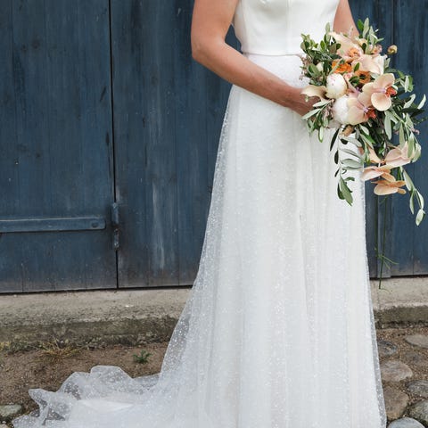 Jeg sælger min skræddersyede brudekjole. Brudekjolen er i enkelt design med silkefór og blondeærme og -ryg i dyb udskæring. BH i kjolen. Skrædder og design: L.Le Design, Aarhus C. Nypris 16.000 kr. Kvittering haves. Kjolen er str. 36/38. Jeg er 169 cm høj og havde 9 cm stilletter på. Kjolen sælges nyrenset.