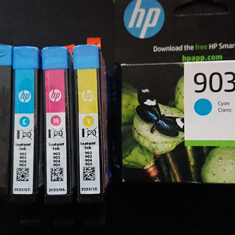 2 gule og 2 magenta (original) og ubrugt, samt 1 kompatibel sort - lige opfyldt (1 uge siden)