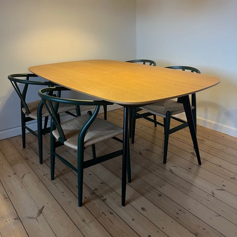 Det er et bord, der er blevet brugt og elsket, så det har et par små spor af tiden – men det er stadig i rigtig fin stand og har mange gode år i sig endnu.