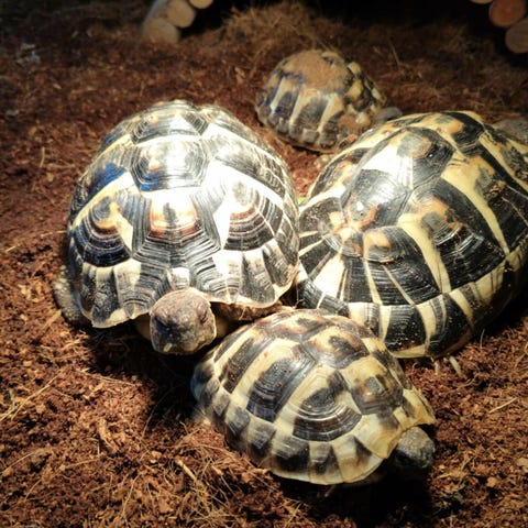 Vi sælger 2 græskelandskildpadder, som knækkede d. 6/11-24, de er sunde og raske, har kun været inde og bor sammen og sælges sammen.