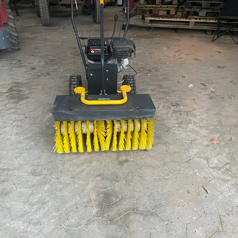 Loncin 163cc motordrevet fejemaskine med stor roterende børste. Udstyret med benzinmotor og justerbar hastighedsregulering. Velegnet til rengøring af udendørs arealer som indkørsler og fortove.