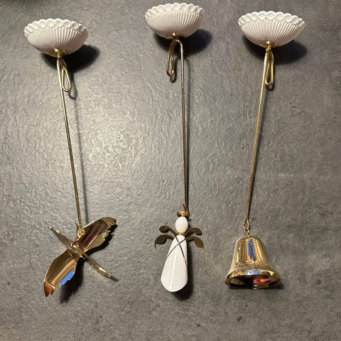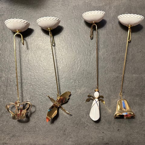 To lyseholdere med hhv. Fugl og Krone - begge med porcelænsskål.