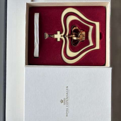 Royal Copenhagen juleophæng med fugl og krone - 24 karat.