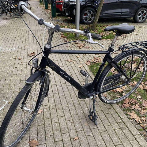 Kildemoes herrecykel str 55 med tromlebremser. Cyklen har sort stel og er udstyret med gearskifte fra Shimano Nexus med 8 gear. Den er designet til almindelig brug og har skærme, taske og bagagebærer.