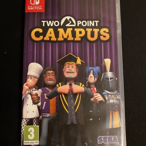 Sega Two Point Campus Nintendo Switch spil. Indeholder spillet Two Point Campus med funktioner til opbygning og styring af en universitetscampus. Egnet til Nintendo Switch konsol.