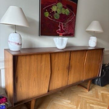 Teak skænk som står i fin stand, på trods af brugsspor.