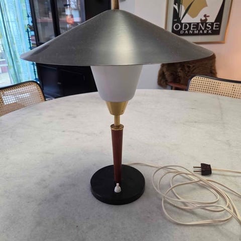 Ældre meget smuk bordlampe produceret af LYFA, formodenligt designet af Bent Karlby. Sort metal og messing.