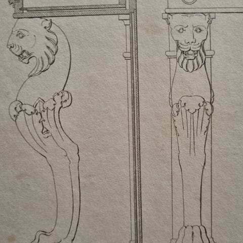 G.F. Hetsch Klismosstol.Pl. 54. Fra "Fortegninger for Haandværkere", 1839-1843. Kobberstik. Sjælden