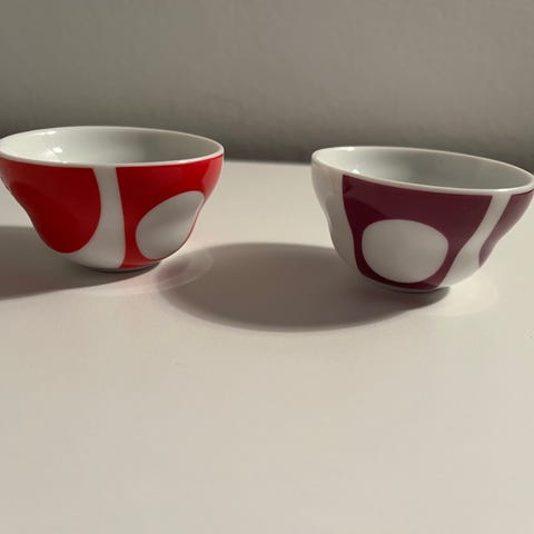 Retro æggebægre fra Pantone Univers. 2 blå og 2 sorte. Sælges samlet 200kr