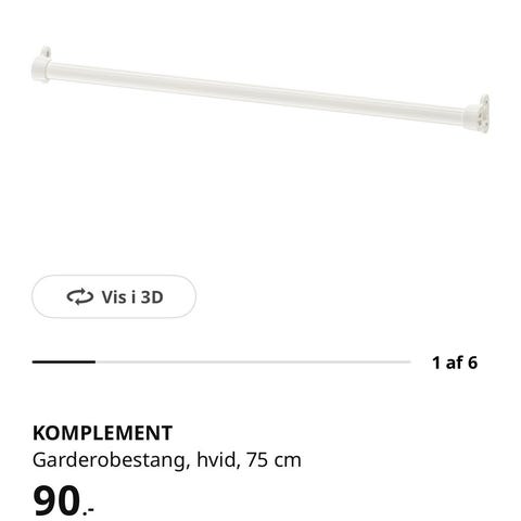 Komplement garderobestang. 100 kr. per stk.