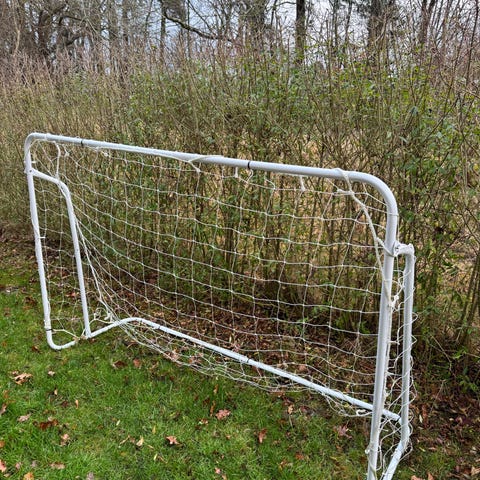 Fodboldmål i metal med net til udendørs brug. Passer til almindelige fodboldspil og træning. Robust konstruktion med net til opsamling af bolden.