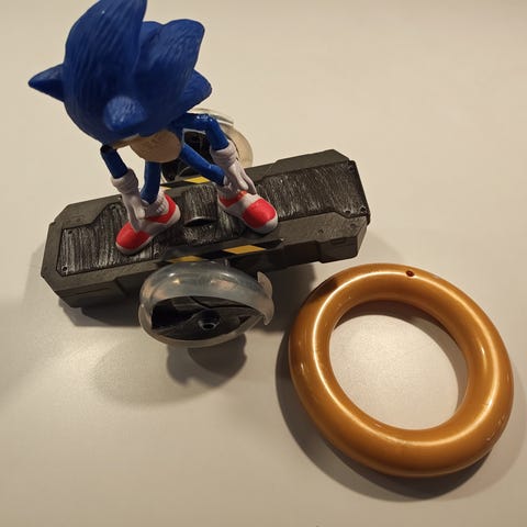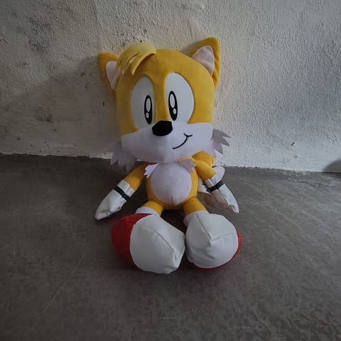 Sonic-tøjdyret har pyntet på en hylde og fremstår derfor som ny. Hovedet er flot og meget meget blødt.