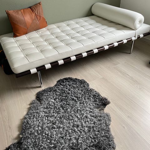 Der er god sidde- og liggekomfort, og de små skuffer giver praktisk opbevaring. Et møbel der virkelig skiller sig ud og tilføjer varme og karakter til rummet.