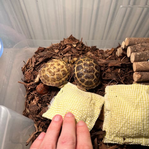 To 8 årige Mauriske skildpadder sælges. Papir haves. 3000 pr stk.