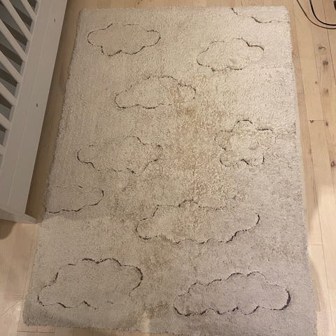 Helt nyt børnetæppe fra Rugvista, rund ø100. Råhvid med regnbue. Kunne ikke bytte da 30 dages retur var overskredet, men kan ikke bruges da det ikke er egnet til gulvvarme, sælges derfor ubrugt. Nypris 490 kr.