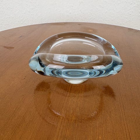 Askebæger/skål fra Holmegaard Glasværk, Michael Bang. Askebæger i opalhvid med klart krystal overfang. Fuldstændig intakt uden skår.