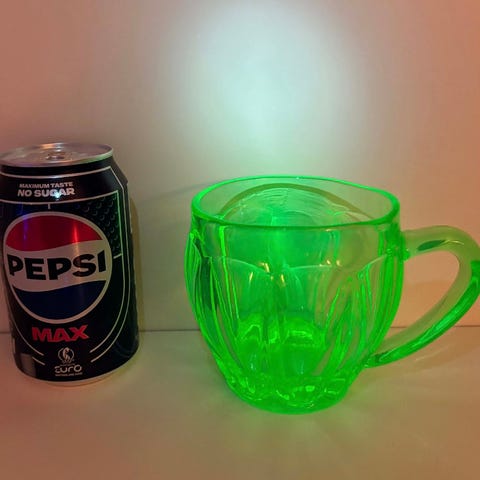 Uraniumglas Glas, 2 små skåle, flødekande og ske (spiseske størrelse)