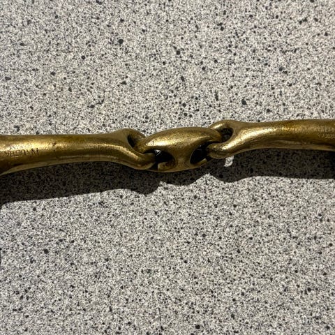 BR muffebid, D-ringsbid, 3-delt. Materialet er metal. Brugt kun 3 gange, men har små ridser. Nypris 300,-.