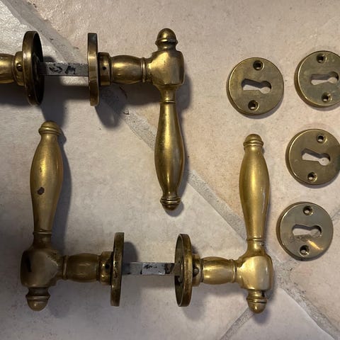 Beskad Dørhåndtag og nøgleskilte i hvid og messing