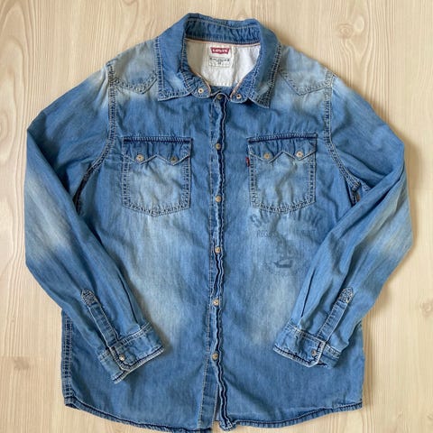 Levi's Denim skjorte i blå farve, størrelse 152, designet til unisex børn. Fremstillet i denim materiale, egnet til daglig brug.