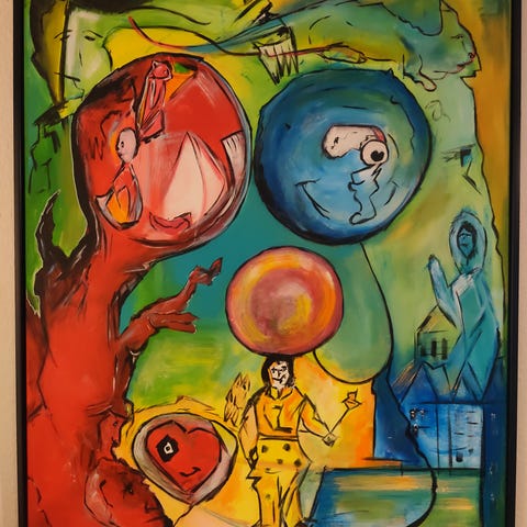 De ekspressive penselstrøg og spontane linjer skaber en levende dialog mellem det naive og det reflekterede, mellem kaos og orden. Erotiske symboler, hjerter og menneskelignende skikkelser optræder som fragmenter af følelser og erindringer – ikke som faste fortællinger, men som åbne invitationer til beskuerens egen fortolkning.