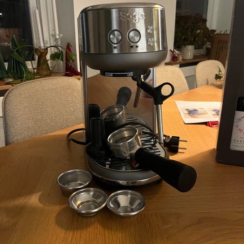Sælger min Sage Bambino Plus espressomaskine, som laver super god kaffe. Maskinen er velholdt og fungere upåklageligt.