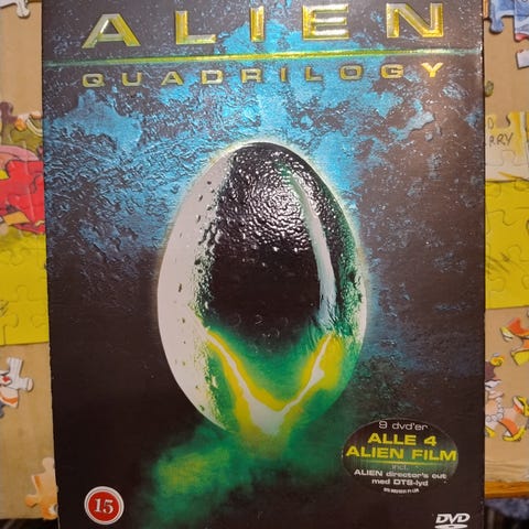 Alien Quadrilogy DVD-samling indeholder alle fire Alien-film: Alien, Aliens, Alien 3 og Alien Resurrection. Hver film er i farve med forskellige versioner og ekstramateriale. Samlingen inkluderer teaterversioner, workprint og specialudgaver med en samlet spilletid på flere timer.