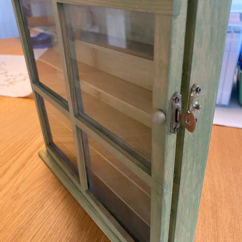 Sødt lille børneskab i træ, malet lilla. Velegnet til dukketøj, udklædningstøj eller som lille garderobe på børneværelset.