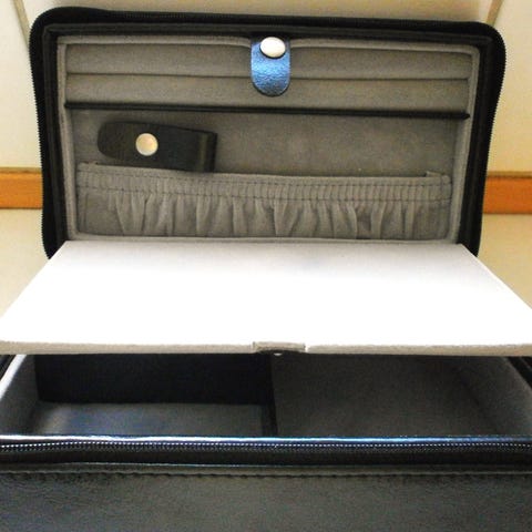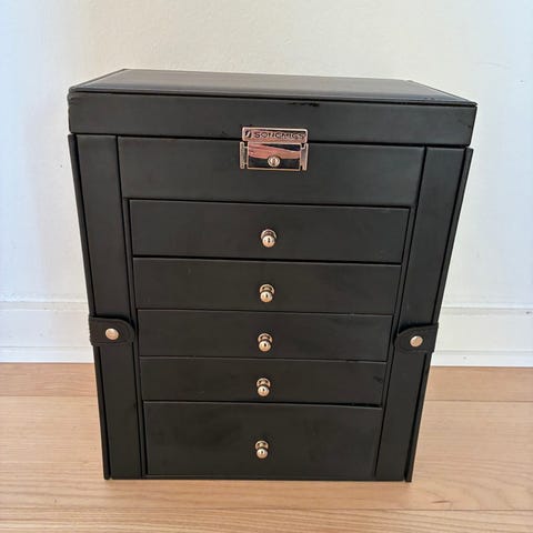 Zara smykkeskrin med spejloverflade, indeholder flere rum til opbevaring af forskellige smykker. Skuffe med polstret sektion til ringe og separate rum til andre smykker.